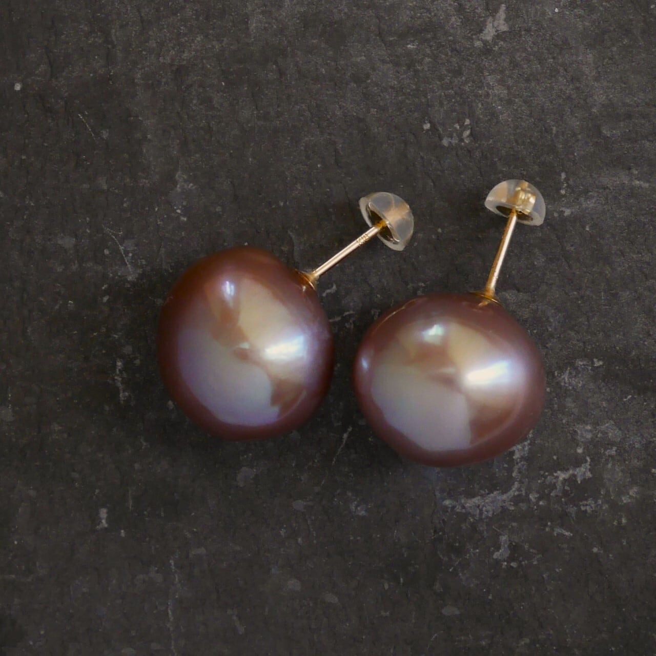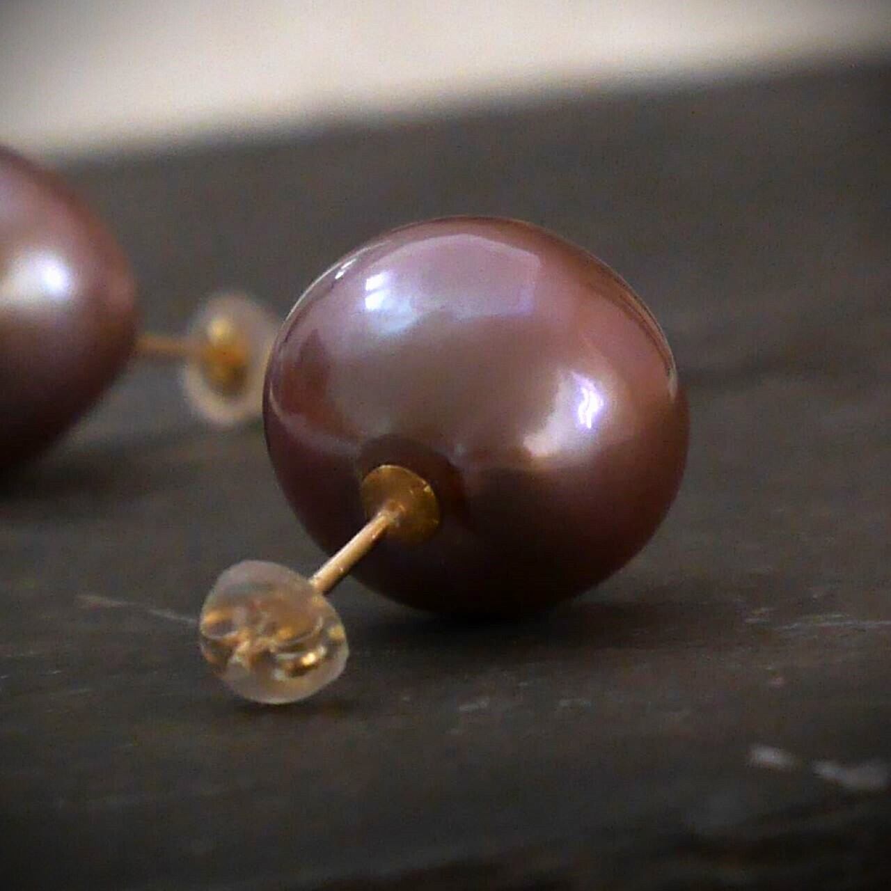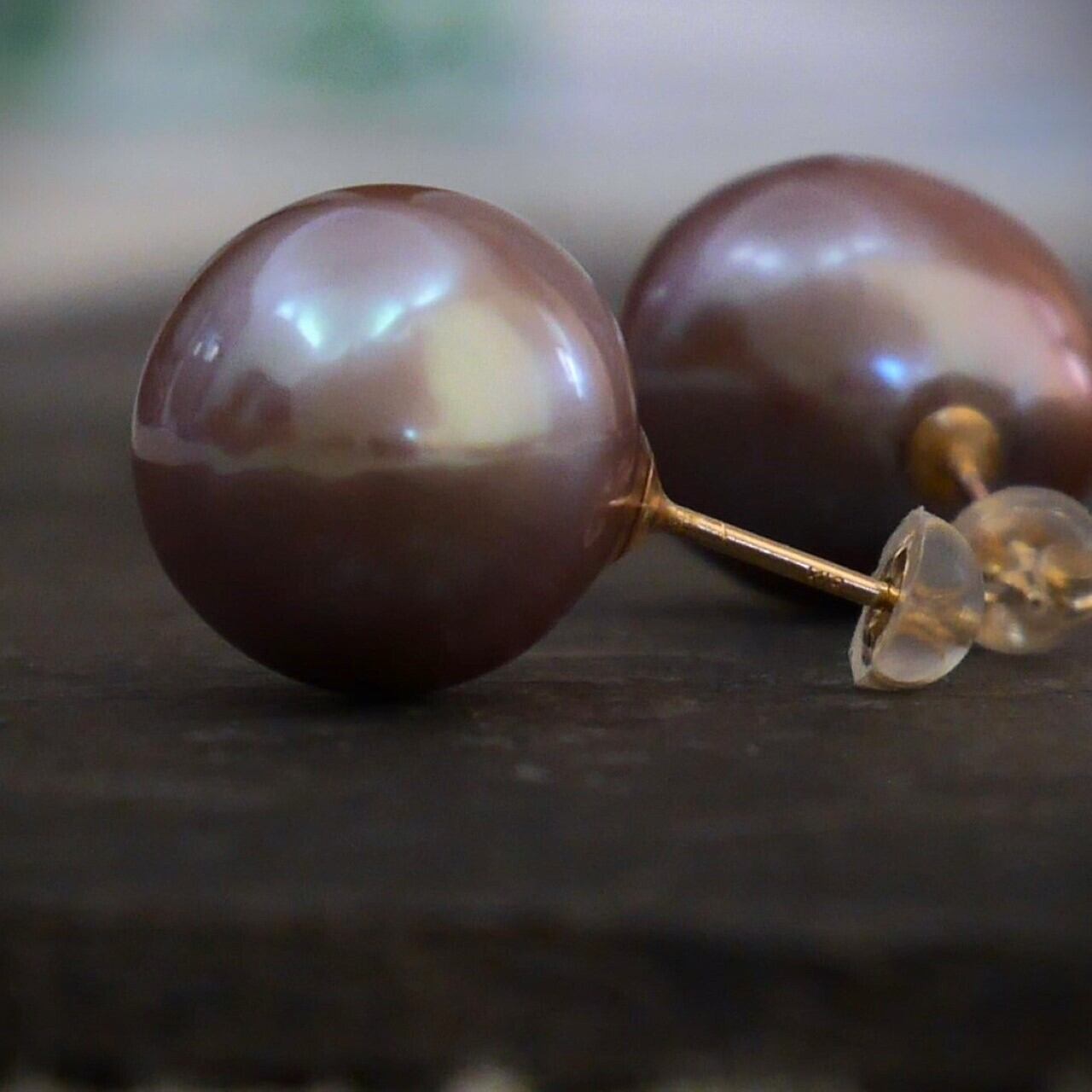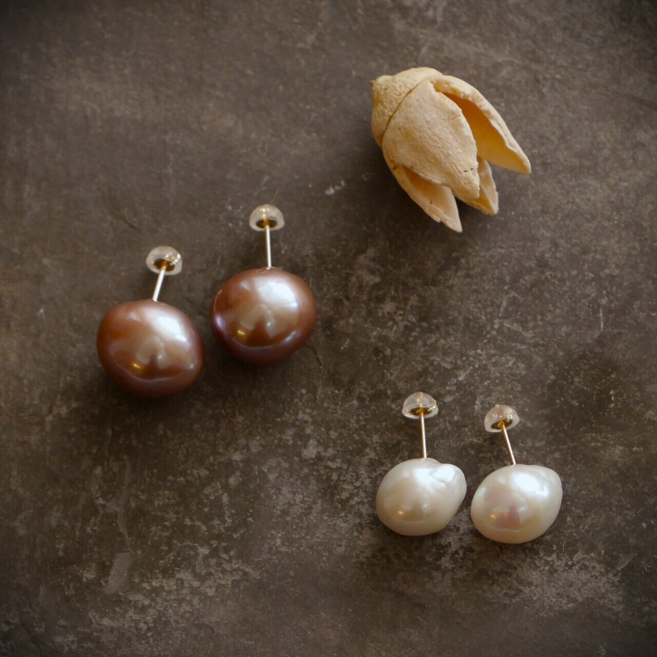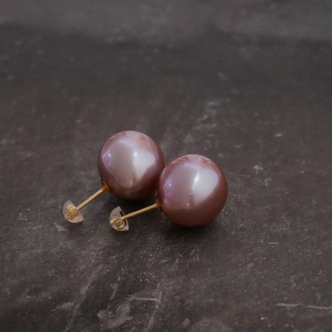 絶妙なニュアンスカラーが美しい大粒ピンクパールのスタッドピアス。