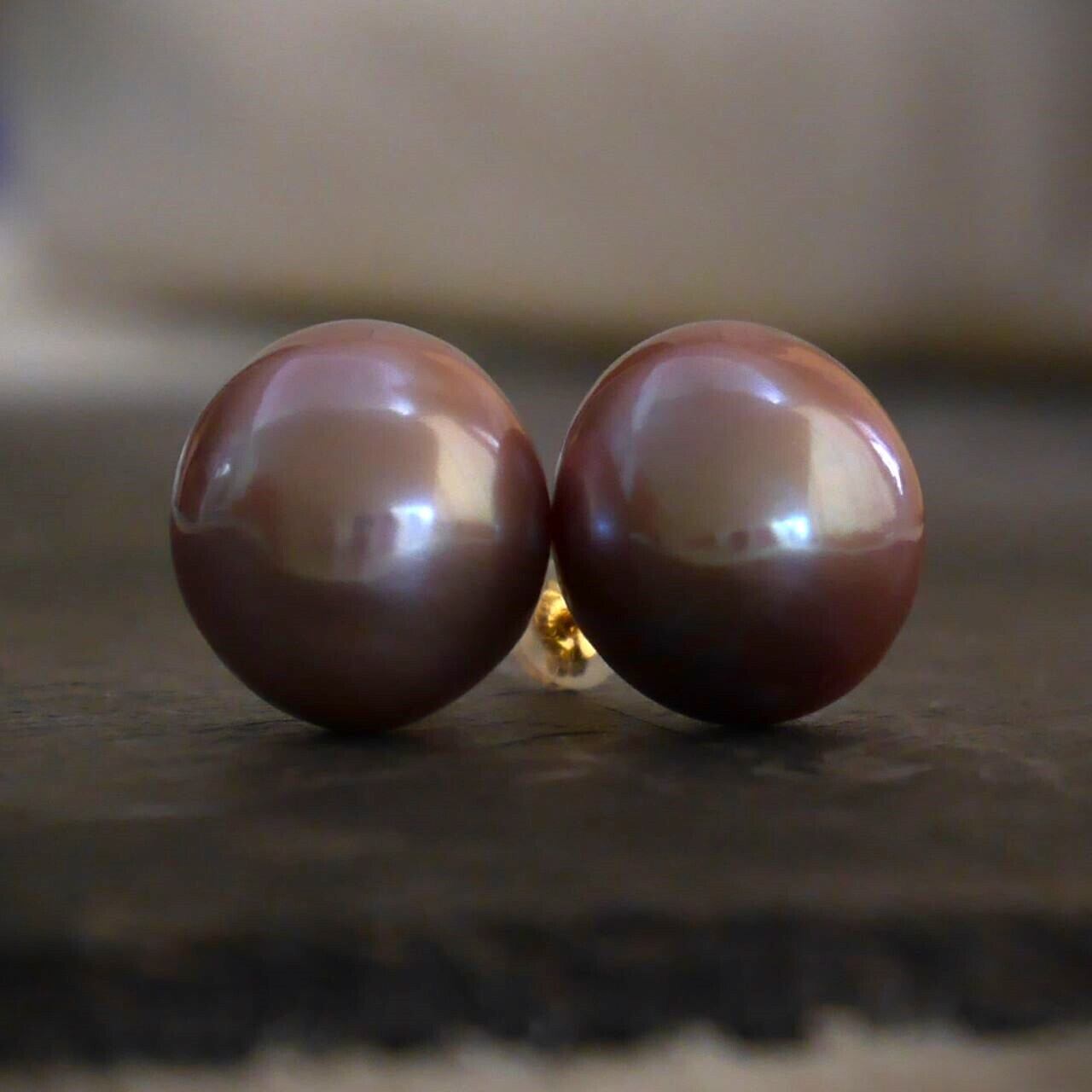 淡水パールは無核のものが一般的ですが、こちらは稀少な有核淡水パールとなります。