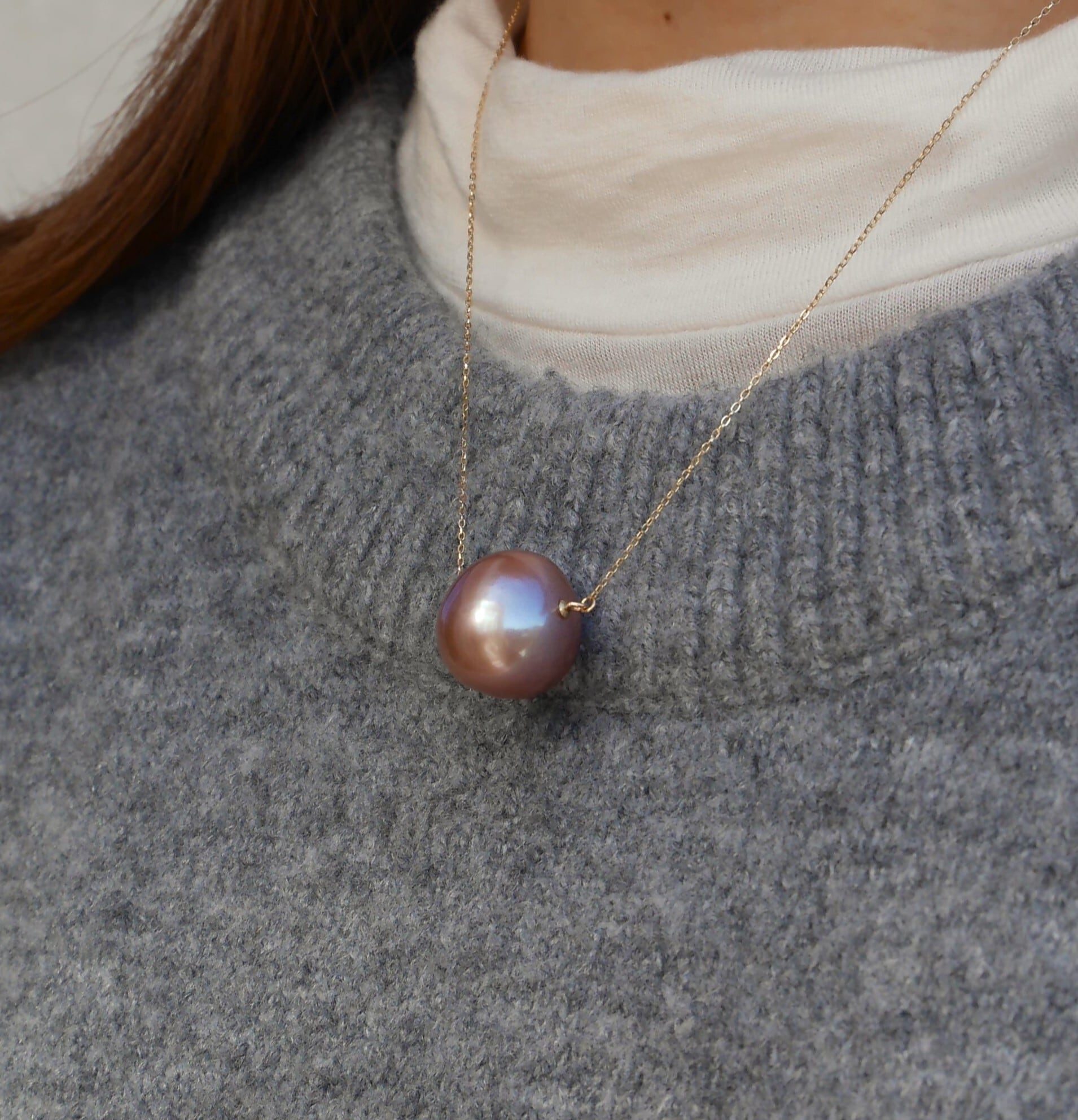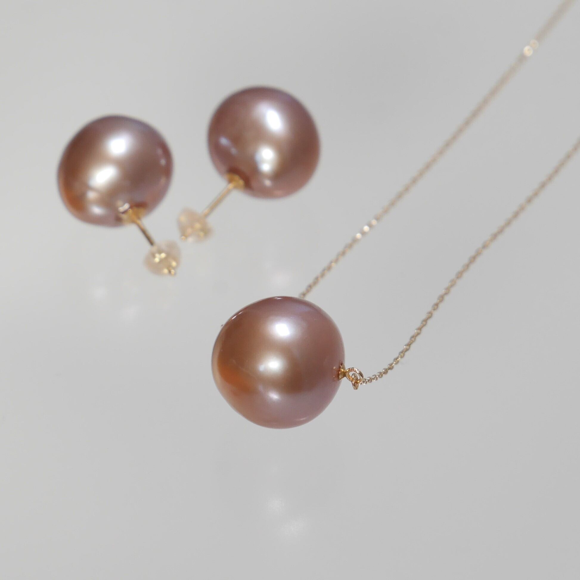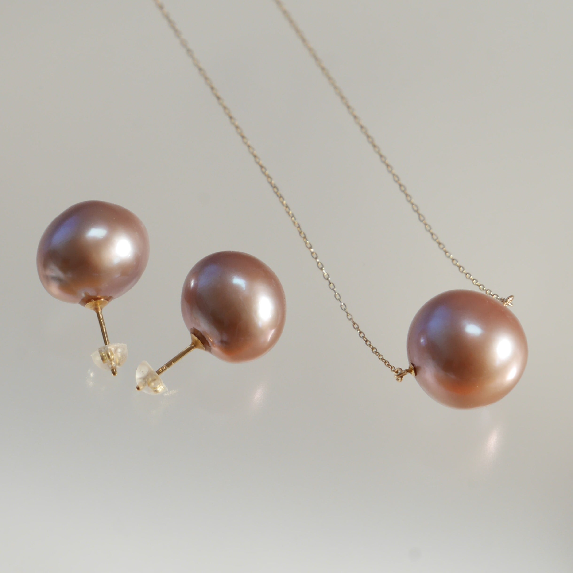 Mauvetteの大粒パールピアスは、稀少なモーヴピンク色が魅力の逸品です。