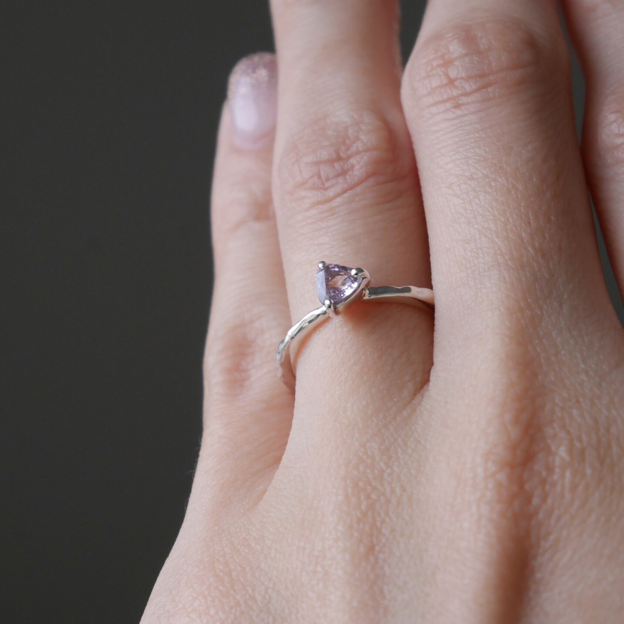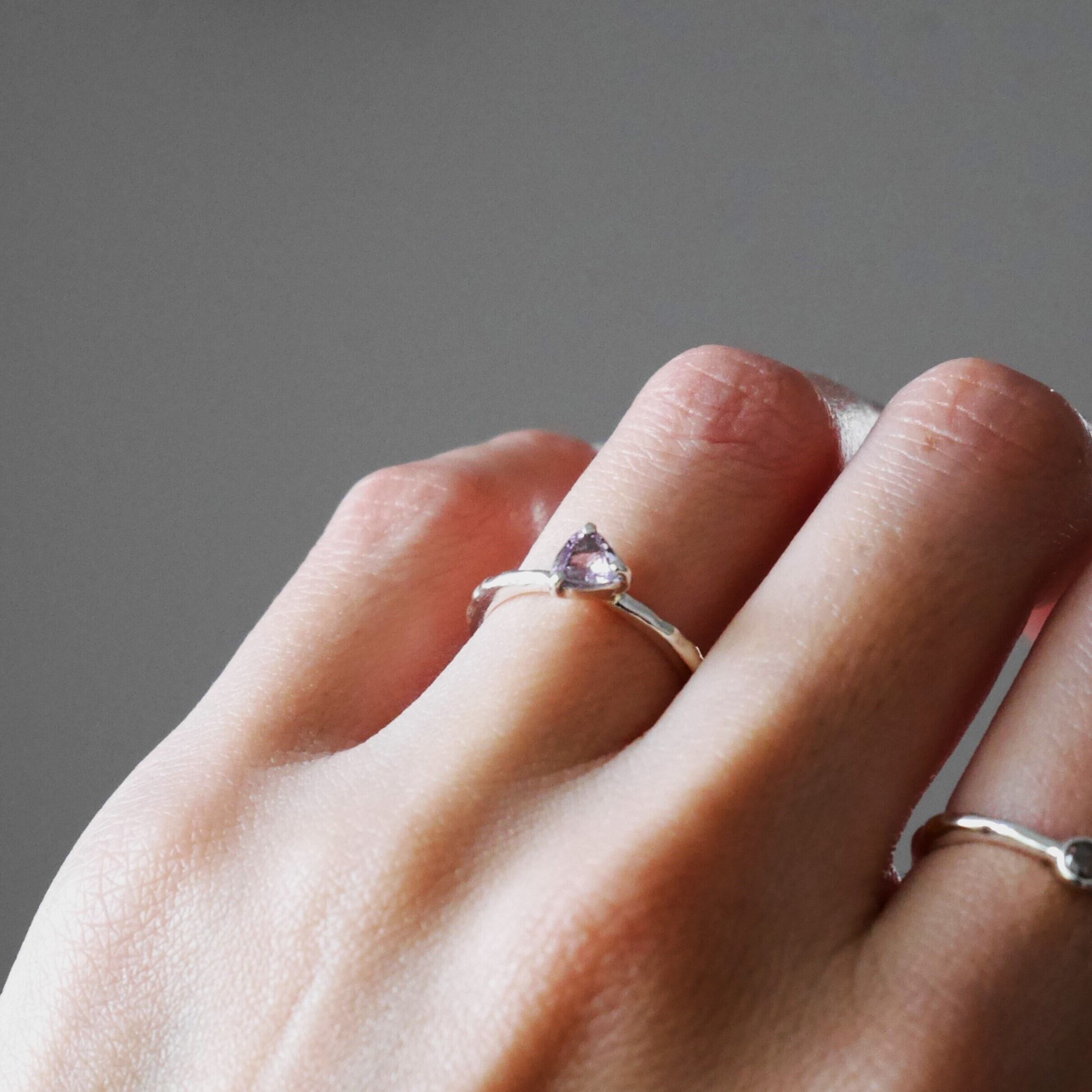 ピンクサファイアの三角形カットは
